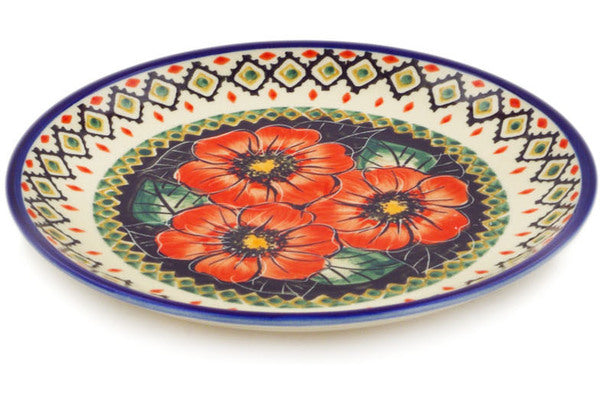 This Polish Pottery Plate is handmade and handpainted by the Cer-Raf factory in Boleslawiec, Poland. Manufacturer item number H9604B. It is 1" high and measures 7½" by 7½". The weight of this Plate is 0.9 lbs. It is part of the Poppy Passion Collection.