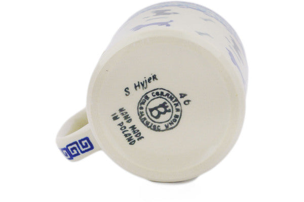 This Polish Pottery Mug is handmade and handpainted by the Ceramika Bona factory in Boleslawiec, Poland. Manufacturer item number H0694N. It is 3¾" high and measures 4¾" by 3½". The capacity of this Mug is 13.12 oz (brimful) and it weighs 0.9 lbs. It is part of the Puppy Pleasure Collection.