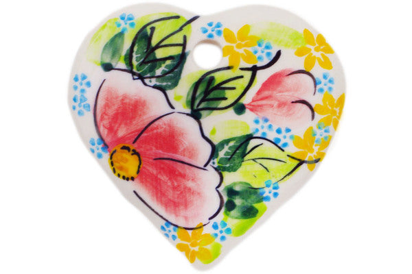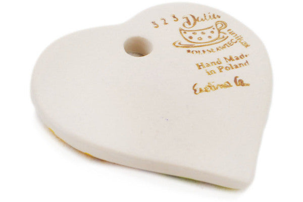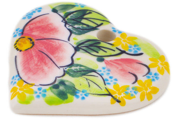 This Polish Pottery Heart Pendant is handmade and handpainted by the Dalia factory in Boleslawiec, Poland. Manufacturer item number H1610R. It is ¼" high and measures 2¾" by 2½". The weight of this Heart Pendant is 0.1 lbs. It is part of the Vibrant Vinca Collection.