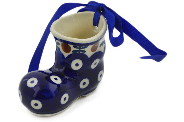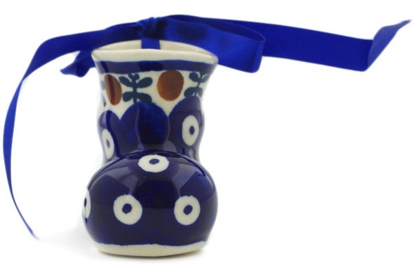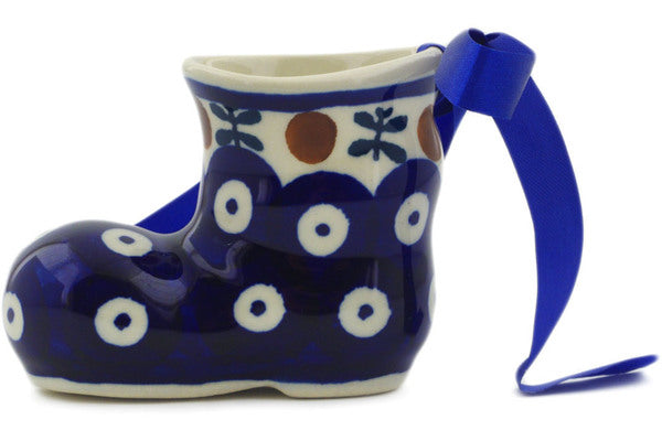 This Polish Pottery Boot Ornament is handmade and handpainted by the Manufaktura factory in Boleslawiec, Poland. Manufacturer item number H2630K. It is 2¼" high and measures 3" by 1½". The weight of this Boot Ornament is 0.2 lbs. It is part of the Mosquito Collection.
