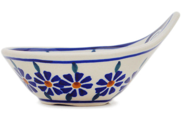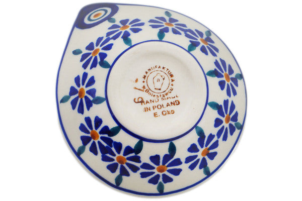 This Polish Pottery Bowl is handmade and handpainted by the Manufaktura factory in Boleslawiec, Poland. Manufacturer item number H8552P. It is 2¼" high and measures 4" by 3¼". The capacity of this Bowl is 2.10 oz (brimful) and it weighs 0.2 lbs. It is part of the Peacock Collection.