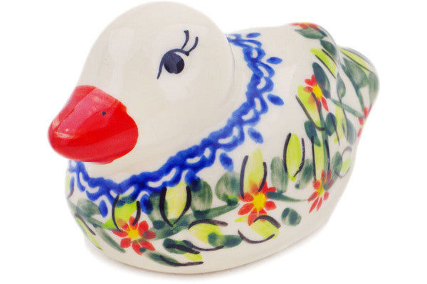 This Polish Pottery Duck Figurine is handmade and handpainted by the Ceramika Bona factory in Boleslawiec, Poland. Manufacturer item number H1775Q. It is 2½" high and measures 4" by 2¼". The weight of this Duck Figurine is 0.3 lbs. It is part of the Elegant Garland Collection.