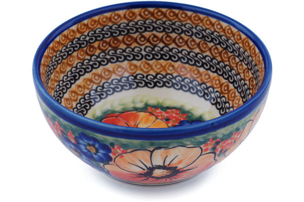 This Polish Pottery Bowl is handmade and handpainted by the Cer-Raf factory in Boleslawiec, Poland. Manufacturer item number H5491F. It is 3" high and measures 6¼" by 6¼". The capacity of this Bowl is 27.05 oz (brimful) and it weighs 1.2 lbs. It is part of the Bright Beauty Collection.