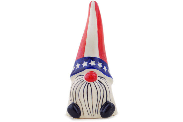 This Polish Pottery Gnome Figurine is handmade and handpainted by the Ceramika Bona factory in Boleslawiec, Poland. Manufacturer item number H2034R. It is 7¼" high and measures 3¼" by 2¾". The weight of this Gnome Figurine is 0.7 lbs. It is part of the Stars And Stripes Collection.