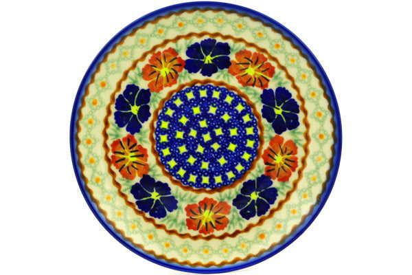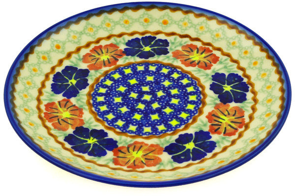 This Polish Pottery Plate is handmade and handpainted by the Ceramika Bona factory in Boleslawiec, Poland. Manufacturer item number H5740F. It is 1" high and measures 7½" by 7½". The weight of this Plate is 0.8 lbs. It is part of the Paradise Poppy Collection.