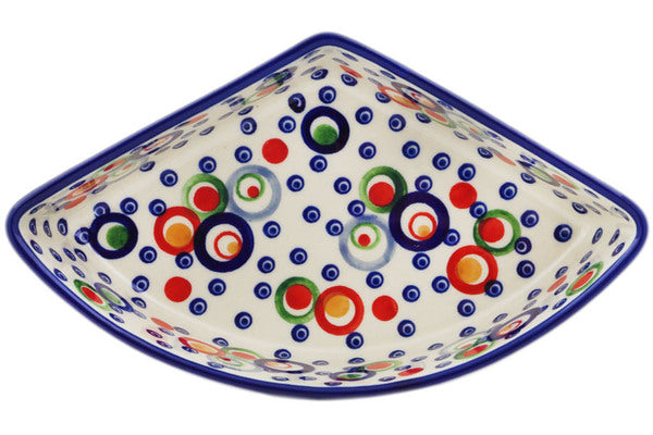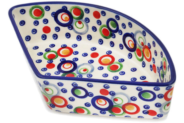 This Polish Pottery Bowl is handmade and handpainted by the Manufaktura factory in Boleslawiec, Poland. Manufacturer item number H0557L. It is 2¼" high and measures 8½" by 5". The capacity of this Bowl is 18.09 oz (brimful) and it weighs 1.2 lbs. It is part of the Bubble Machine Collection.