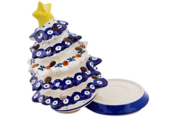 This Polish Pottery Christmas Tree Candle Holder is handmade and handpainted by the Manufaktura factory in Boleslawiec, Poland. Manufacturer item number H8398Q. It is 7½" high and measures 4¾" by 4¾". The weight of this Christmas Tree Candle Holder is 1.7 lbs. It is part of the Mosquito Collection.