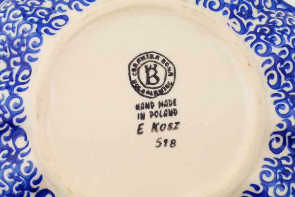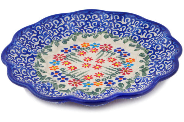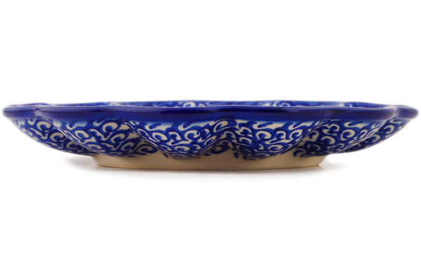This Polish Pottery Egg Plate is handmade and handpainted by the Ceramika Bona factory in Boleslawiec, Poland. Manufacturer item number H4031Q. It is 1½" high and measures 8½" by 8½". The weight of this Egg Plate is 1.2 lbs. It is part of the Blissful Daisy Collection.