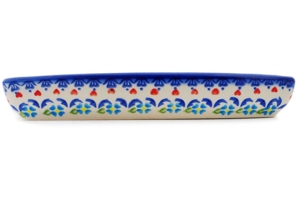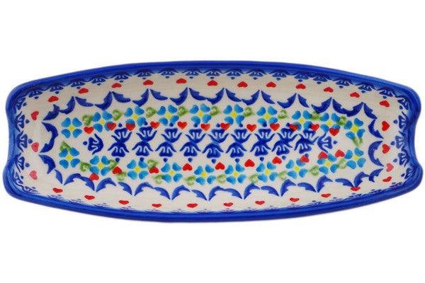 This Polish Pottery Corn Tray is handmade and handpainted by the Ceramika Bona factory in Boleslawiec, Poland. Manufacturer item number H0109Q. It is 1½" high and measures 9¼" by 3½". The weight of this Corn Tray is 0.9 lbs. It is part of the Graphic Armor Collection.